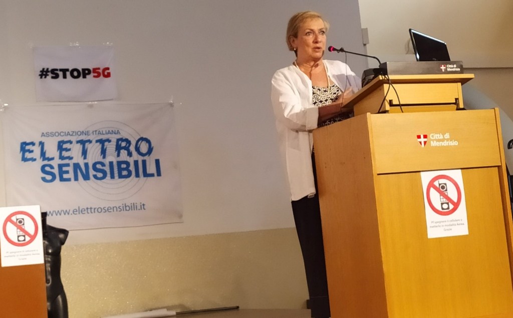 Tra i relatori la dott.ssa Fiorella Belpoggi direttrice del Centro per la Ricerca sul Cancro Cesare Maltoni dell’Istituto Ramazzini, che ha ricevuto un vera e propria standing ovation dalla platea. Al termine dei lavori, sul palco sono saliti attivisti Stop 5G provenienti da Germania, Austria, Danimarca, Ucraina, Polonia e Inghilterra, oltre Italia e Svizzera.