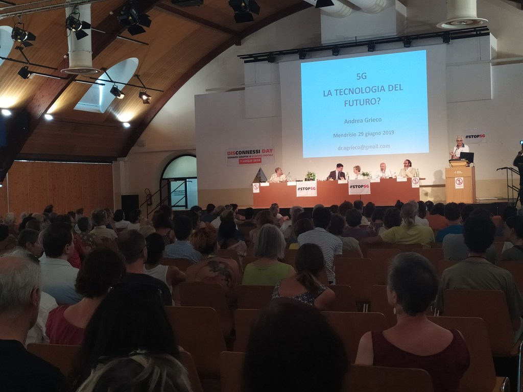 Svizzera, grande successo a Mendrisio per il 1° Convegno Internazionale Stop 5G promosso dal Comitato Stop 5G Ticino e Grigioni. Diretta streaming, traduzione simultanea per gli stranieri, carta stampata e Tv in sala insieme ad oltre 400 persone, presenti numerose rappresentanze di cittadini d’Europa aderenti alla neo-costituita alleanza europea Stop 5G, 33 associazioni e comitati di 18 paesi d’Europa. “Un grande successo, siamo soddisfatti”, afferma Alessandro Bianda del comitato per la precauzione nella svizzera italiana.