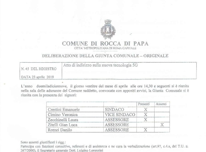 In esclusiva su OASI SANA riportiamo alcuni dei documenti ufficialmente esposti all’Albo Pretorio, firmati dagli organi d’indirizzo delle pubbliche amministrazioni Stop 5G.
