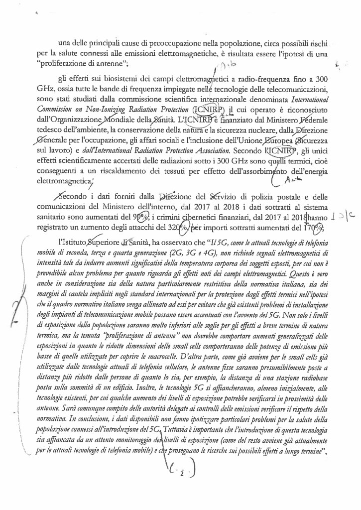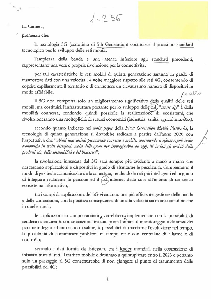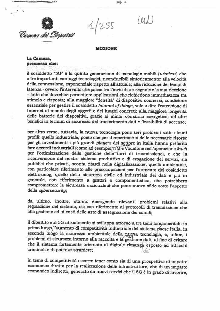 Finte le audizioni in commissione, il giorno del verdetto dopo le relazioni: oggi la Camera dei Deputati si esprimerà sul 5G del Governo Conte, mettendo al voto le mozioni presentate dai vari gruppi parlamentari. Il Gruppo Misto ha chiesto il blocco immediato della sperimentazione 5G in attesa di certezze sugli effetti per la popolazione esposta. Forza Italia rivendica invece l’innalzamento dei limiti soglia di campo elettrico dagli attuali 6 V/m ai più alti 61 V/m. Partito Democratico e MoVimento 5 Stelle hanno poi aperto alle lobby del wireless, così come ha fatto la Lega, presentando una mozione negazionista sui rischi da elettrosmog. Favorevole al 5G ma con riserva sui pericoli per umanità ed ecosistema è invece Fratelli d’Italia, che chiede al Governo studi sanitari e monitoraggi ambientali. Ma col 5G funzionante.