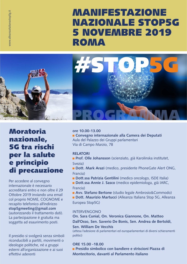 Anche gli studenti saranno a Roma il 5 Novembre nella manifestazione nazionale unitaria Stop 5G promossa dall’Alleanza Italiana Stop 5G. Al Convegno internazionale presso la Camera de Deputati dal titolo ‘Moratoria nazionale 5G, tra rischi per la salute e principio di precauzione’ parteciperanno infatti diversi alunni delle scuole d’Abruzzo che, come altri attivisti d’Italia, arriveranno nella capitale a bordo di pullman.
