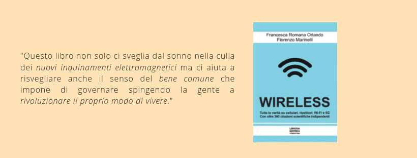 Chi cerca una guida per orientarsi contro il negazionismo imperversante sui danni da elettrosmog, adesso ha un’opzione in più. Un altro affidabile strumento su cui contare. “Wireless. Tutta la verità su cellulari, ripetitori, Wi-Fi e 5G. Con oltre 300 citazioni scientifiche indipendenti” (Liberia Editrice Fiorentina) è il libro scritto a quattro mani da Fiorenzo Marinelli (biologo ex ricercatore del Centro Nazionale delle Ricerche, autore di test in laboratorio e sul campo per le frequenze di radar, Wi-Fi e telefonini) e Francesca Romana Orlando (media attivista per la precauzione, autrice di saggi sulle malattie ambientali), in libreria per offrire una rassegna argomentata su evidenze scientifiche, studi e letteratura biomedica che attestano rischi e danni per umanità ed ecosistema. Più che indizi, gli autori mostrano prove. E pure schiaccianti, elencate in sequenza senza lesinare colpi, anche in soccorso della sempre più indifesa natura (avifauna, insetti e piante sempre sotto minaccia da Mhz e Ghz). Continuare ad ignorarle, facendo finta che il pericolo non esista, è sviante. E imperdonabile. Considerata l’invasione elettromagnetica di quinta generazione a cui il Governo ha deciso di immergerci, assenti preventive valutazioni sanitarie e studi sugli effetti a breve-medio-lungo termine per la popolazione altrimenti irradiata pure da onde millimetriche. “La letteratura scientifica sugli effetti biologici delle frequenze utilizzate dal 5G è molto scarsa – scrivono gli autori – ad oggi è noto che queste onde penetrano nella pelle per circa 1 cm e che i potenziali effetti avvengono soprattutto sulle terminazioni fini del sistema nervoso periferico dell’epidermide e sui dotti delle ghiandole sebacee”.