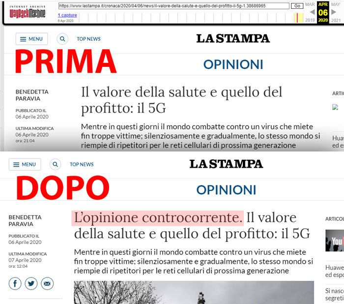 La colpa della cantante salernitana, conosciuta negli Emirati Arabi come Princess Bee, è la stessa di Romina Power. Essersi esposta, intrufolata tra le maglie oscure del 5G, riportando il virgolettato di una rappresentante regionale dell’Alleanza Italiana Stop 5G. sollevati legittimi dubbi sulla versione ufficiale che non convince per motivare l’anomalo (e sincronico) taglio d’alberi e le modalità di diffusione del virus partito in Cina. “Il mio articolo sul 5G su La Stampa è stato rimosso a causa del deputato Marco Bella – sui social ha scritto Paravia – si è opposto alla libertà di stampa. Eppure riportavo solo fatti ed opinioni“. Opinioni censurate da forze di maggioranza di Governo, in attesa che la neo-task force di Palazzo Chigi – in sinergia con l’AgCom agguerrita per il Fact Checking – si appresti a dispensare bollini di controllo, roba da Ministero della Verità orwelliano per delle vere e proprie prove tecniche di regime!