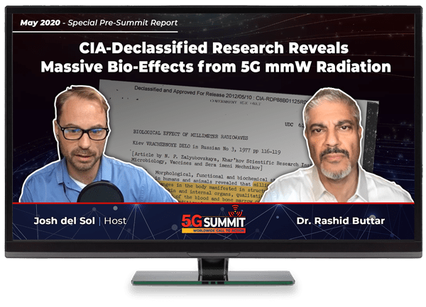“Il rapporto declassificato, quindi non più segreto della Cia, – afferma Josh del Sol dell’organizzazione del summit 5G CRISIS – riassume 7 studi russi sui più significativi effetti biologici causati da livelli di radiazione a onde millimetriche tra 37 e 60 GHz, livelli di esposizione che oggi le agenzie governative ci dicono invece essere sicuri”.