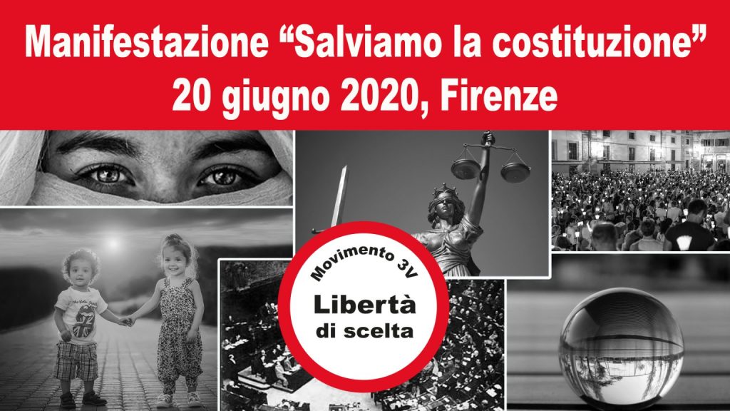 Sabato 20 giugno 2020, a Firenze in piazza Santa Croce, dalle ore 17.30 alle ore 20.30 si terrà la manifestazione “Salviamo la Costituzione“, ove il popolo italiano, a cui appartiene la sovranità della Repubblica, ribadirà che non è e non sarà mai più disposto ad accettare l’annullamento dei diritti fondamentali della Carta Costituzionale italiana.