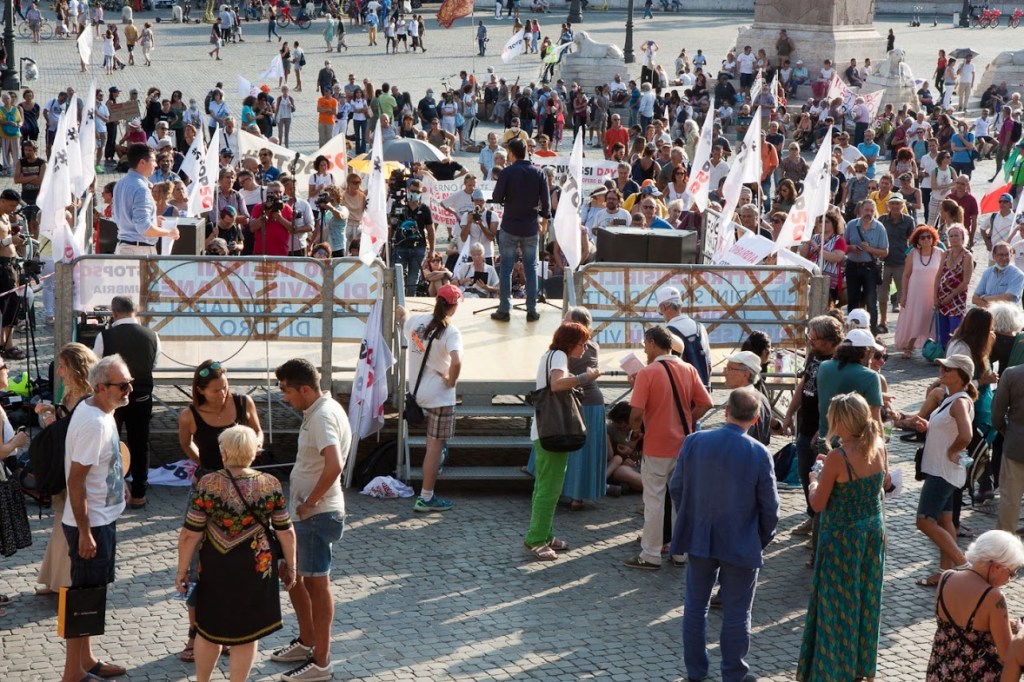 Circa 1.500 manifestanti provenienti da ogni parte d’Italia si sono ritrovati nel cuore di Roma per la manifestazione nazionale promossa dall’Alleanza Italiana Stop 5G nella centralissima, suggestiva e immensa cornice di Piazza del Popolo: si è trattato del più grande evento mai realizzato prima negli ultimi decenni di lotta contro i pericoli dell’elettrosmog.
