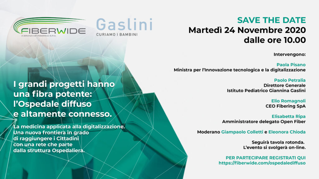 “La digitalizzazione applicata alla Sanità: una nuova frontiera che corre su reti infrastrutturali in fibra ottica“. Senza mai pronunciarne la sigla, l’Era del 5G da 10 Gbit/s con scalabilità fino a 100 Gbit/s è ufficialmente sbarcata nell’ospedale pediatrico Istituto Giannina Gaslini di Genova. Si tratta del progetto “Ospedale Diffuso e Altamente Connesso”, un’integrazione tra telemedicina, intelligenza artificiale e robotica, realizzato – come si legge nella nota dell’ufficio stampa del nosocomio ligure – “sfruttando la capillarità della rete in fibra ottica posata da Open Fiber, una connettività veloce e scalabile consente di praticare la telemedicina, la diagnosi a distanza Casa-Ospedale, la formazione con medici specializzati collegati da ogni parte del mondo, il trasferimento dei voluminosi dati elaborati dai ricercatori, l’intrattenimento su piattaforme televisive per i piccoli pazienti ricoverati nei reparti e la didattica a distanza per quelli in età scolare“.