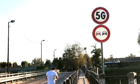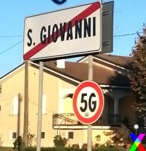 Per contestare nel 5G “l’ennesima violazione del principio di precauzione”. Ulixes (nome d’arte) e gli artisti spontanei di NOMISSIS hanno pensato di rimodellare il cartello stradale circolare che indica il limite massimo di velocità consentito nei centri urbani col divieto di superare i 50 Km. orari, nello slogan DIVIETO 5G. In rete hanno messo anche un tutorial col quale invitano i cittadini ad emulare nell’azione artistica un’originale veicolo di comunicazione visiva. Ma occhio al codice della strada !
