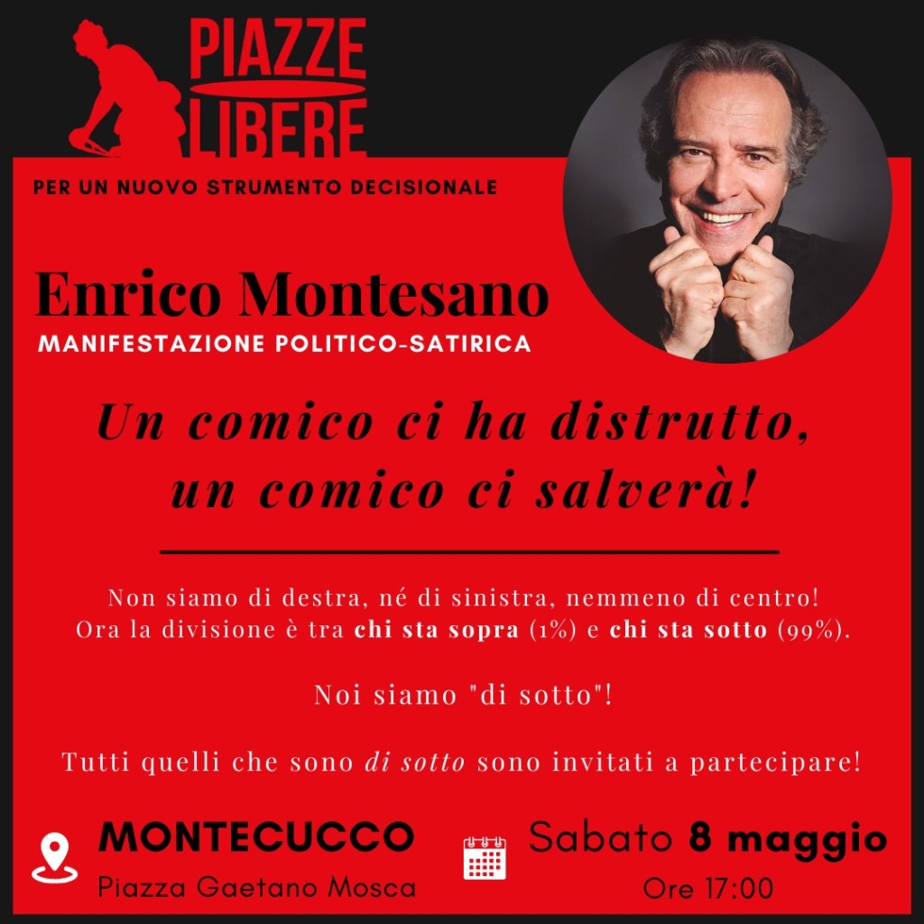 One man show, consapevolezza e ficcante ironia: “un comico ci ha distrutto, un comico ci salverà!” A Montecucco, zona della periferia sud di Roma, oltre un migliaio di persone in visibilio per lo spettacolo politico-satirico (e gratuito) di Enrico Montesano, allestito un palco nello slogan ‘Piazze Libere’. Nessun colore politico, nemmeno l’ombra di una bandiera di partito o movimento, ma tanta la voglia di tornare a ridere, stare insieme, abbracciarsi e uscire dall’incubo dell’emergenza perenne. Se questo è un uomo, fuori dalle ideologie: “non siamo né di destra, né di sinistra, ma nemmeno di centro. Siamo quelli di sotto, il 99% della popolazione vessato dall’1%, cioè quelli di sopra che ci comandano”. Da indiscusso mattatore, il decano tra gli artisti ha divertito il pubblico bersagliando mandanti ed esecutori della morte dei diritti e delle libertà, sancita da quella che non ha esitato a definire come la Terza Guerra Mondiale, l’Era del Grande Virus, citate nella lotta contro tirannia e dittature le icone di Martin Luther King e Gandhi. “Mio nonno ha fatto la Prima Guerra Mondiale – ha ripetuto Montesano – mio padre la seconda, a me e noi tutti ci tocca la terza”.