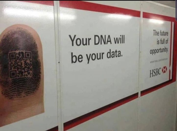 Lo spot transumanista segue la campagna pubblicitaria lanciata dal gruppo bancario HSBC, The Hongkong and Shanghai Banking Corporation Limited: “il tuo DNA sarà il tuo dato“, da Londra recitava nel 2013 la cartellonistica partorita ad Hong Kong dal primo istituto di credito europeo per capitalizzazione (157,2 miliardi di euro). Quindi sangue e DNA come banca dati tracciabile su reti e strumenti di nuova tecnologia: è questa la nuova frontiera su cui stanno investendo non solo le multinazionali.