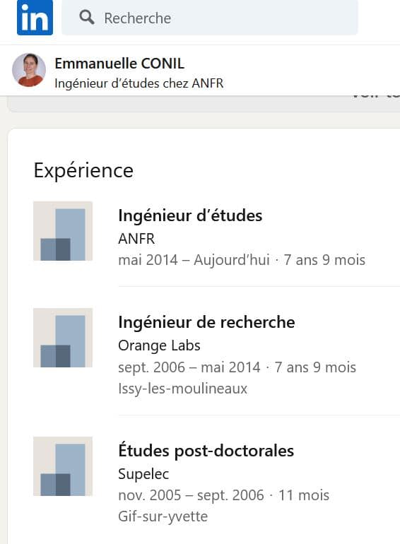Tuttavia, come mostra il suo profilo su LinkedIn (vedi sotto), la dott.ssa Emmanuelle Conil – che era responsabile nientemeno che del software nella cassetta degli attrezzi della mostra dello studio Mobi-kids – lavorava all’epoca (2006-2014) anche per Laboratori Arancioni.