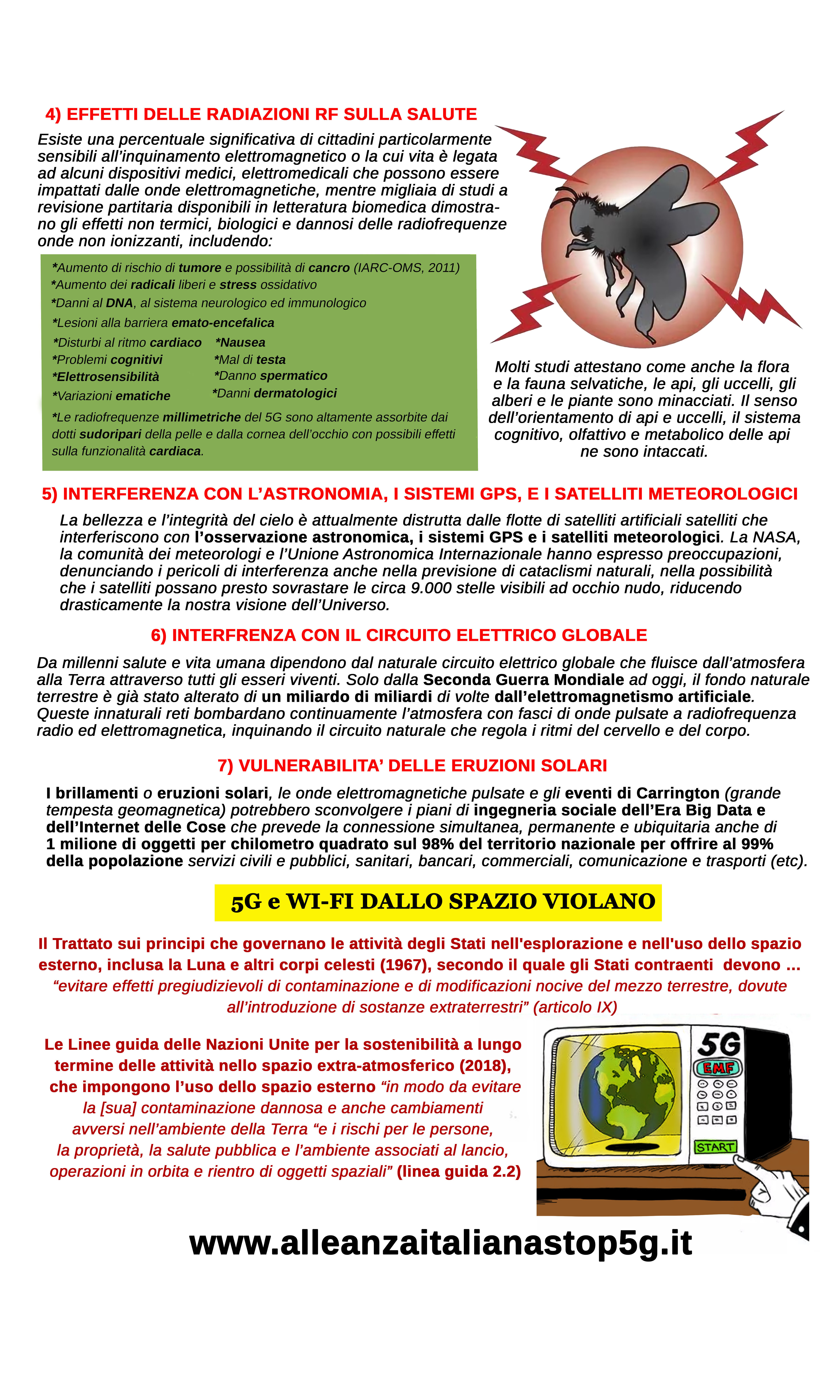 “Come affermato nel nostro deposito di documenti“, affermano gli avvocati Stop 5G da terra, dal cielo e dallo spazio, “l’approvazione arbitraria da parte della FCC della più grande modifica di elevazione della storia, che ora è oggetto di controversia presso la corte federale ( collegamento ), è stata un punto di svolta. La proposta SpaceX ( domanda per la prima volta a maggio 2020 ) aumenterà enormemente i rischi. Si sta stabilendo però un percorso ragionevole ed equilibrato, in collaborazione con altri paesi che lanciano satelliti, per incoraggiare l’iniziativa innovativa privata, salvaguardando nel contempo la fiducia pubblica internazionale nei cieli“.