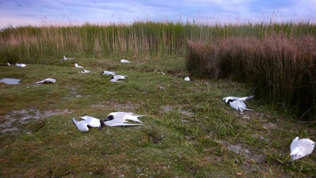Allo stesso modo in Francia , due grandissime colonie di sterne hanno avuto due esperienze completamente diverse. Nella riserva naturale di Platier d’Oye, vicino al porto di Calais, una colonia di 3.000 sterne panino ha iniziato a nidificare ad aprile. I primi 100 uccelli morti sono stati scoperti il 20 maggio e nel giro di poche settimane la colonia è stata quasi completamente spazzata via.