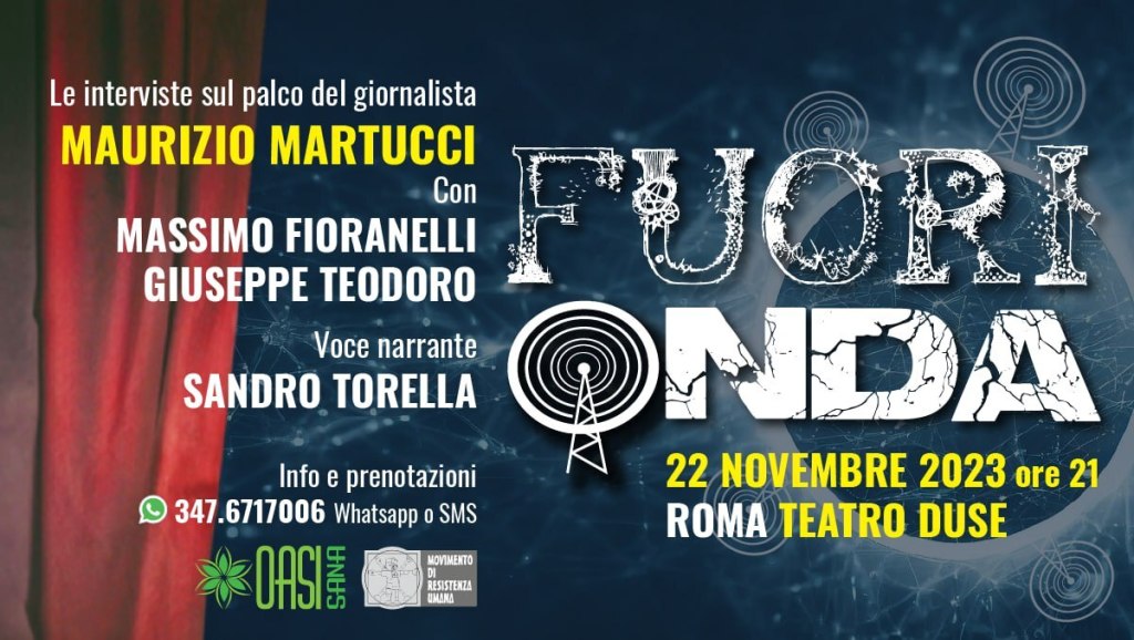 L’aumento dell’elettrosmog in tutta Italia diventa il tema dell’evento Fuori Onda in programma a Roma mercoledì 22 Novembre 2023 alle ore 21: nello storico Teatro Duse (zona Re di Roma), il giornalista d’inchiesta Maurizio Martucci intervista dal palco due esperti, il medico Massimo Fioranelli e il tecnico Giuseppe Teodoro. Durante la serata si alterneranno le testimonianze dei malati da elettrosmog, protagonisti nella voce narrante dell’attore Sandro Torella.