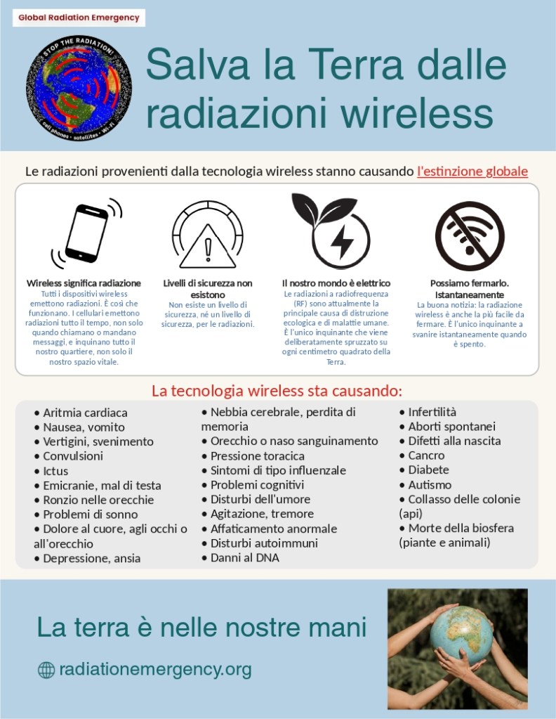 Global Radiation Emergency sbarca in Italia: “ripristinare la vita sulla Terra, wireless causa estinzione globale”