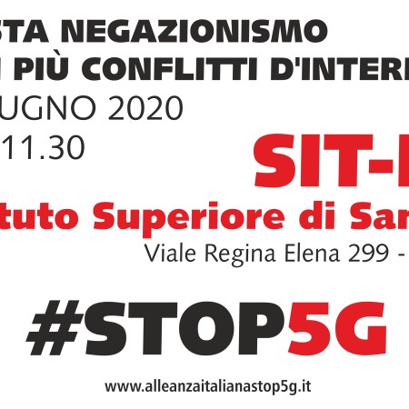 4 Giugno, sit-in Stop 5G davanti l’Istituto Superiore di Sanità: basta negazionismo
