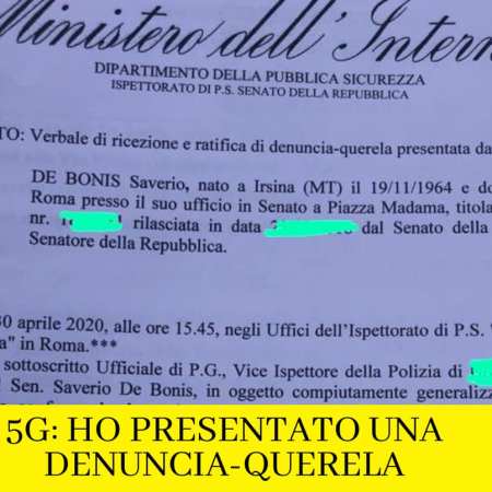 Sen. De Bonis va dalla Polizia e denuncia il 5G: mattanza d’alberi, tossico e lobby al potere col Cura Italia (art.82)