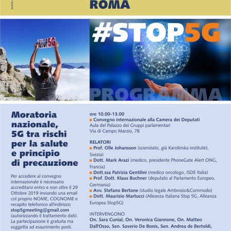 Roma 5 Novembre, convegno internazionale Stop 5G in Parlamento: ignorare il pericolo è un attentato alla salute pubblica!