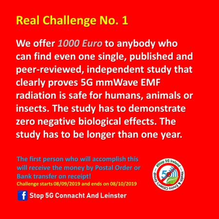 La sfida d’Irlanda, offerti 1.000 euro a chi dimostra l’innocuità del 5G!