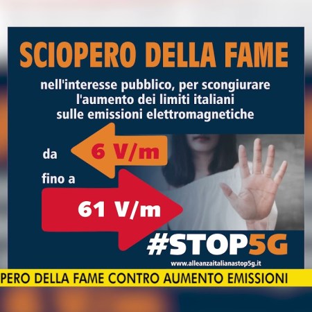 5G, in sciopero della fame contro l’innalzamento dell’elettrosmog: “no 61 V/m, overdose elettromagnetica!”