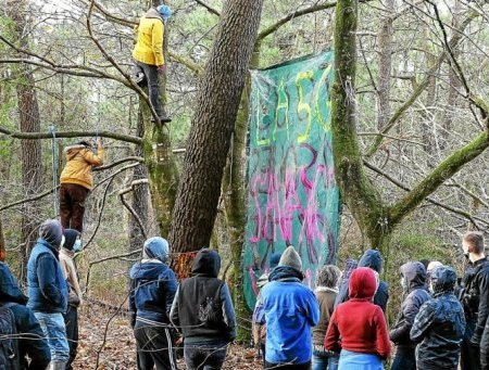 Sugli alberi per non farli tagliare: bloccato il 5G (e installano eco-cabine telefoniche di legno)